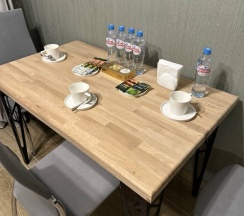 Мы заселились сюда после часа ночи. Нас тепло встретили и проводили в уютный номер, где было чисто, тепло, особенно понравился дизайн. В номере есть всё необходимое: чай, вода, кофе.