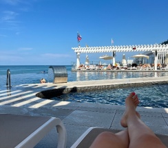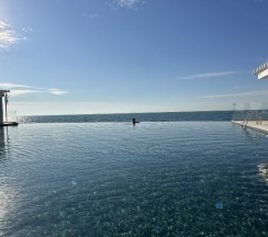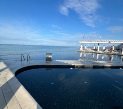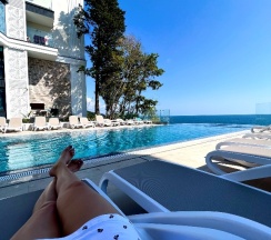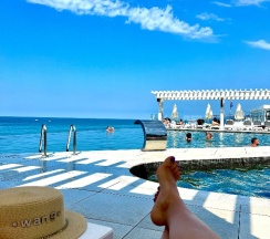 По мне так это самое шикарное место в Сочи, в том же Адлере на пляже не протолкнуться, море грязное и пресс народа, здесь же свой пляж, людей немного, плавай сколько душе угодно, далее фишкой данного места является аж 2 Инфинити бассейна, плаваешь и кайфуешь видом на море + есть сауна, территория очень ухоженная, номера с красивым дизайном