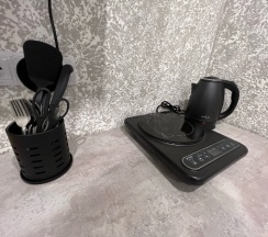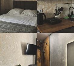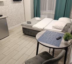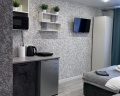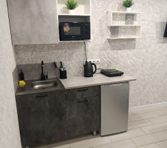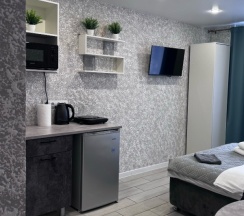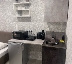 Очень уютный, чистый, приятный номер. Комфортно было находиться в нём. Всё есть и посуда и эл.плита, микроволновка. Хороший, чистый санузел. Приятный и приветливый персонал. Удобное место расположения, напротив тц и магазины с продуктами.
