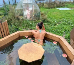 Прекрасный вид на лес из окна и террасы, хозяйка вообще лучшая- доброжелательная, со всем поможет) Дом находится в окружении леса, очень тихо и спокойно. Большая и ухоженная территория, дети могут безопасно играть. Мангальная зона чудесная! Можно брать неограниченное количество дров, что не мало важно! Имеется чан и баня, мы воспользовались чаном и в восторге, есть мангал, беседка и детская площадка.
