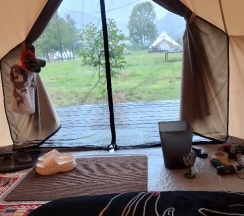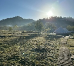 Прекрасная атмосфера, место энергетически сильное, приветливые хозяева, Мария встретила с прохладным морсом в изысканных стаканах, что актуально после дороги. Комфортные палатки, территория полностью оборудована для удобства и уютного отдыха. Мы компанией друзей и с детьми отдыхали, всем понравилось баня, речка, просмотр фильмов при луне!!! Рекомендую к посещению, мы обязательно встретимся!!!