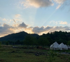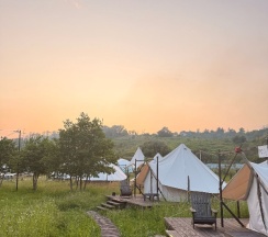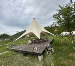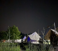 Классное место, отдыхали с ночёвкой. На месте нас встретила прекрасный администратор, Арина, всё показала, объяснила, провела экскурсию по территории и активностям, а территория там совсем не маленькая)) Красивые шатры, в каждом есть всё необходимое, очень мило внутри, кровати, вешалки, стульчики, проектор звёздного неба, кондиционер, в общем внутри, всё красиво, как на фото в отзывах, Прекрасные, удобные стулья снаружи. На территории проходит йога, можно попасть на занятия. Туалет и душ общие. Есть настольный теннис, бадминтон, волейбол, игры настольные, караоке, кинотеатр под открытым небом, баня, также есть прекрасное место, где можно посидеть вокруг костра. Ещё есть пруд с красивыми кувшинками и река с заводью в которой плавают рыбки. Впервые плавали с рыбками, нам очень понравилось. Спасибо большое, прекрасное место, замечательный персонал, обязательно к вам ещё приедем. Успехов вам в развитии 🤍