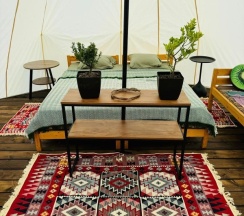 Что нашли для себя приятного: тенты установлены на невысоких деревянных платформах-террасах, у каждого есть пару кресел. Тенты друг от друга отдалены, внутри просторно, все новое, чисто, вкусно пахнет. Порадовал декор и проектор звездного неба=) есть тёплые одеяла и кондиционер - замернуть невозможно.