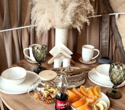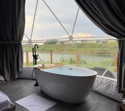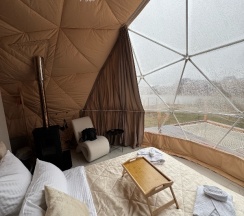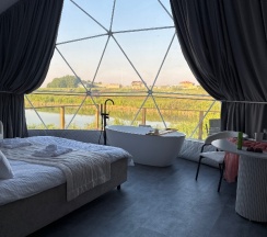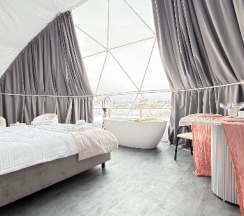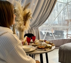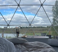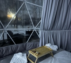 Были проездом в Тюмени, решили посетить этот замечательный глэмпинг. Это на самом деле рай для перфекциониста, в котором продумано все до мелочей, начиная от средств от комаров и заканчивая великолепной едой, которую при желании приносят в дом. Локация отеля удачная на берегу реки, интерьер внутри очень уютный, и купол, и баня чистые и свежие, все новое, есть дополнительные места для отдыха: беседки, качели, джакузи, чан, общий купол для просмотра фильмов. В номерах все на уровне отелей 5*, Особенно хочется отметить персонал, все очень вежливые и тактичные. Благодарим за замечательный сервис.