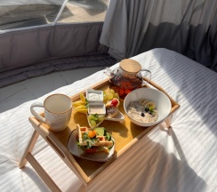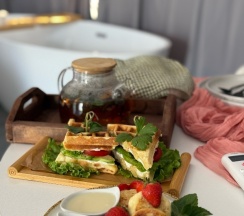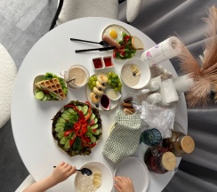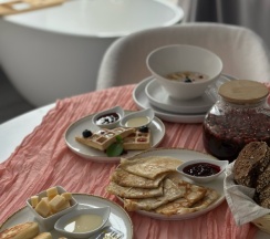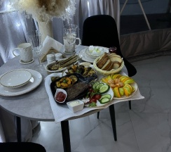 Катрин Лог» - это не просто отдых, а гастрономическая сказка. Завтраки радуют кашей, блинчиками, сырниками, фруктами и топовым чаём - так вкусно, что хватало до обеда. Ужины - отдельная история: роскошные нарезки, овощи на гриле, рыба, сытно и изысканно. Всё аккуратно доставляется прямо в номер или на веранду с видом на закат.