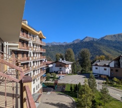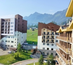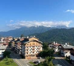 Отличное место для отдыха. Номер четырёхкомнатный хороший, чистый, вид с балкона шикарный. Завтраки в Запеканке вкусные-большой выбор на шведской линии. В отеле есть прачечная комната самообслуживания- стоят стиральные и сушильные машины, за 200-400 руб можно постирать и высушить вещи. До канатной дороги 10 минут прогулочным шагом.