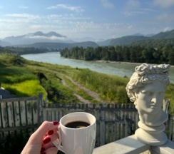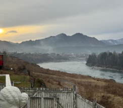 Провели пару дней в этой прекрасной гостинице🛎️. Атмосферное место с потрясающей энергетикой ⚡️. Как будто у друзей погостили . Супер уютный номер , всё идеально чисто , есть всё для комфортного проведения времени. Спали 🛌 как младенцы, отдельное спасибо за аромаподушки . Не просто всё продумано, не говорю про шампуни 🧴, гели , ватные палочки и диски , утюг тд и тп . Хотите скоротать вечер , есть мольберт 🎨🖌️и все для рисования. Хотите помедитировать , есть глюкофон 🥁. Не знаете что ещё посмотреть на алтае , есть книга про Алтай 📖. Виды из номера умиротворяющие на величественные горы ⛰️ и царицу Катунь . Здесь же есть кафе Ку-кухня , можно ОЧЕНЬ вкусно покушать 🍳 интересный интерьер, хочется всё рассматривать до мелочей , красивая посуда. Завтраки потрясающие , а десерты пальчики оближешь 🍰