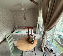 Место замечательное!!! Безумно красивые и уютные номера, а вид из номера… Здесь отдыхаете душой во всех аспектах, об этом позаботились хозяева в каждой мелочи - начиная с ооочень дружелюбной и приятной атмосферы, возможностью реализовать себя творчески: рисуя, играя на гипнофоне, - и заканчивая такими мелочами, как, элементарно, запах в номере. В номере продуманы все детали, в том числе декор, посуда, гигиенические принадлежности и многое другое. Если вы вдруг забудете всю косметичку, не переживайте, здесь есть ВСЕ. А кафе… Если вы умеете играть на пианино, то, думаю, вам не откажут, а с радостью предложат на нем сыграть. А нет, так можно почитать книг в уютной атмосфере :)) Да, кстати, если вы готовите себе ужин сами на мангале и вам не хватает посуды, вам предложат из кафе ооочень красивую. Даже своими собственными силами у себя в номере легко организовать ресторанный ужин. Приехали сюда и были в огромном восторге, если бы знали заранее, что будет ТАК хорошо и душевно, обязательно остались бы еще (увы, далее было оплачено проживание в другом месте, где было не так славно). Огромнейшее спасибо хозяину и работникам! 100% вернемся сюда в следующем году!!!