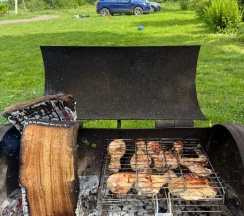К мангалу всегда чистая решетка, горелка, спички, шампура. Зарыбленое озеро (и бесплатная рыбалка), ухоженная территория. Также на территории курятник, что тоже интересно детям. С собой вручи уникальную родниковую воду. Дом простенький, но есть в все удобства и русская печь. Рядом баня, рекомендую!
