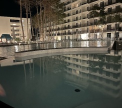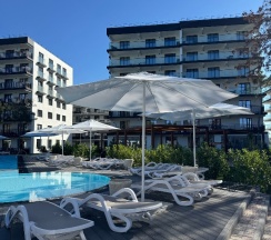 Я очень рада, что нашла этот новый отель. Комфортный отдых, красивая территория, шикарный бассейн с деткой зоной! Хорошая современная детская площадка. Отличный пляж от отеля, есть кафе, душ, туалет и много лежаков, идти от отеля 600 м примерно. Апартаменты все новые стильные. Уборка каждый день, горничные умницы. Семья очень довольна отдыхом! Приедем еще!