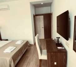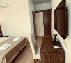 Из плюсов : свежий ремонт, уютный двор , внутри тоже все красиво, чистое белое постельное белье и полотенца, в номерах есть чайник и холодильник, кондиционер, хозяева приветливые и добрые.