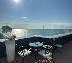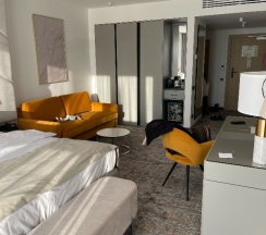 Жили всего одну ночь. Все чистое, новое, сотрудники все приятные, вежливые, угощают приветственным шампанским, пляж совсем рядом и вроде как даже есть лежаки для гостей, но не пользовались, не уверена в количестве и качестве. Расположение прекрасное. Парковка платная подземная 2000 руб в сутки - удобно, но до заезда нигде не видела информацию о цене, сильно удивились, что так дорого, завтрак 2500 руб на человека - не брали, ничего не могу сказать, в городе есть много вариантов хорошо позавтракать за меньшие деньги. В номере кофемашина, чай, вода, есть все для глажки и сушки одежды.