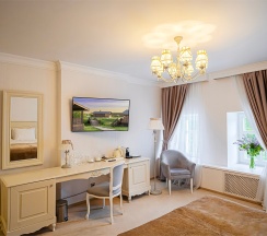 Номер площадью 30 кв.м с большой двуспальной кроватью, которая по запросу трансформируется в 2 односпальные. Номер оборудован просторной ванной.