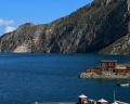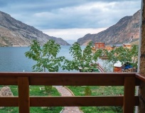 Очень понравилась база , завораживающая атмосфера , горы озеро . Вас покатают там с ветерком на катере и вкусно накормят . Комфортные домики . Для детей есть бассейн батут .