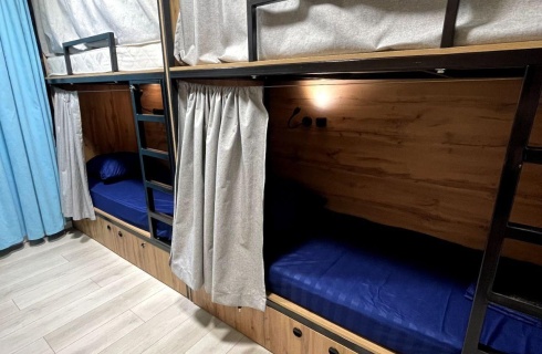 Нормальный хостел, чисто, кровати большие и удобные. Воздух свежий и прохладно. Окон правда нет, так как цокольный этаж и не знаешь чего там за погода на улице. А так очень хороший хостел, останавливаются спокойные, хорошие люди, никто никому не мешает. Туалет и душ чистые.