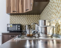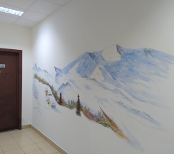 Отель понравился, у нас был номер с кухней, вся посуда в наличии. Вид из окна был бомбический на горы. Еще понравились стены в коридорах, они разрисованы, в нежной акварельной технике.