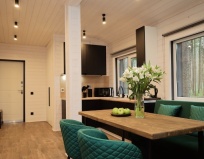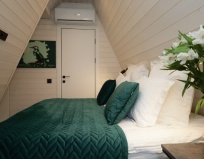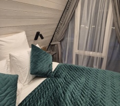 Нам достался домик 2. Он небольшой, но весьма просторный. Новый, красивый, теплый, чистый, выглядел как на картинках. С одной спальней. Все работает. Есть кофе, Алиса, большой телевизор (можно войти в свой аккаунт в подписках), свет зонирован, даже прикроватные тумбочки с беспроводной зарядкой. Своя барбекю зона (не пользовались). Удобный выход к озеру, и там оборудованы места для отдыха на компанию, что тоже очень удобно. Омрачило поездку отсутствие комплекта постельного белья. В дом селились 4 человека. Постель в спальне застелена, при заселении заглянула в шкаф, увидела там доп подушки и была уверена, что белье там же. Но его нигде не оказалось, искали долго. Так как обнаружили отсутствие белья только около 12 ночи, все мои походы и звонки на ресепшен остались без ответа. В итоге спали в одежде под пледами на голом диване. Также стоит иметь в виду, что купель не входит в стоимость аренды банного комплекса и оплачивается дополнительно. В целом впечатления приятные, с удовольствием приеду сюда еще раз.