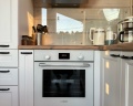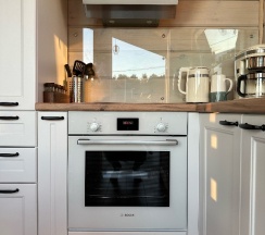 На кухне есть все необходимое: посуда для приготовления и сервировки, капельная кофеварка, индукционная плита, духовой шкаф, гриль. Для того чтобы разогреть пищу-микроволновая печь.