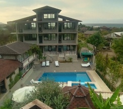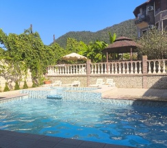Отдыхали в начале октября отличное тихое место ,чистая и ухоженная территория ,отличный номер в стоимость проживания входит завтрак причём полноценный вкусный завтрак и отличные обеды и ужины ,но уже за отдельную невысокую плату, до моря идти минут 10 правда для тех кто не любит ходить или кому тяжело ходить предупреждаю назад с моря придется идти в гору. Хозяин Дмитрий дал нам машину на прокат на три дня за умеренную плату ,это намного дешевле обошлось чем если бы мы покупали экскурсии ,объехали весь Новый Афон ,съездили на озеро Риц, в Сухум ,в Гагры машина не подвела , Хонда фит классный аппарат.Сначала хотели заказать двухместный номер,но когда созвонились с хозяином оказалось что все двухместные выкупленны ,есть трёхместный подороже, поначалу мы конечно расстроились ,но потом пообщавшись с Дмитрием он нам сделал скидку ,за что ему огромное спасибо.Номер был отличный с балконом на третьем этаже,правда есть небольшой минус вай фай ловил не очень ,внизу во дворе всё было хорошо. В общем отдохнули отлично рекомендую.