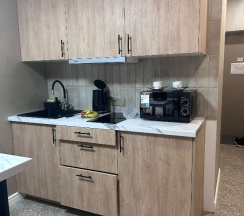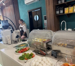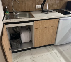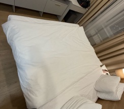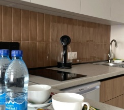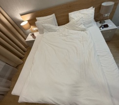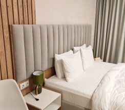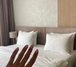 Отель хороший, номер соответствует фото, но с сервисом надо поработать: не выносят мусор, не меняют полотенца, несмотря на то, что на двери целый день висит просьба убрать номер. Воду в бутылочках не дают. Сковорода была с пригоревшим пластиком на дне, видимо, кто-то поставил в горячем состоянии на такую поверхность. Пришлось покупать свою сковороду. Гладильная доска в номере есть, а утюга нет. За 6200 в сутки как бы ожидаешь уровень повыше, а не самим мусор выкидывать.
