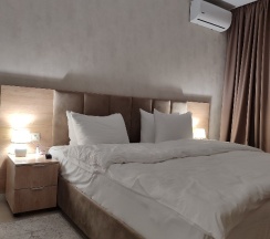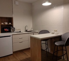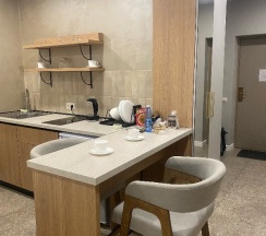 Прекрасный отель😍 Всё на высшем уровне, в номере есть всё необходимое для комфортного проживания. Ежедневная уборка, кухонные принадлежности, полотенца, халаты, и бытовые приборы! Расходные принадлежности (мало, тапочки, гель, шампунь, кофе, вода и другое) пополняют также каждый день. Сам номер оснащён новой мебелью и сделан свежий ремонт. В подъезде дома не шумно и всегда чисто! Жила на протяжении месяца и осталось очень довольна обслуживанием и состоянием номере😍 Обязательное возвращусь туда ещё раз❤