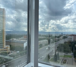 Окна выходят на улицу Партизана Железняка, вид на реку красивый, но постоянно ездят скорые с сиренами, шумно.