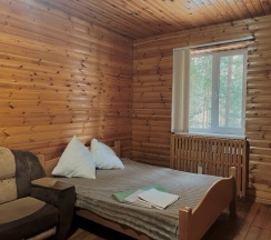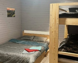 Отличный выбор для дружной компании или семьи, стремящейся к уединению и комфорту в окружении живописной природы. В номере размещены две двухъярусные кровати, отдельная ванная комната с душем и туалетом.