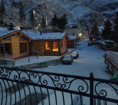 Очень удобное расположение отеля, 1 минута и ты уже поднимаешься на Эльбрус! Чистые и красивые номера (холодильник, чайник все есть). Вид из окна на гору — красотаааа. Включен вкуснейшний завтрак, покушали как дома — вкусные и пышные оладушки, каша яичница на выбор! Цены не дешёвые, но через сервисы бронирования получается хорошая скидка