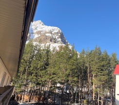 Понравилось: Хорошая, добрая трёшка с небольшими недочетами, явно лучше большинства жилья в Приэльбрусье по такой же цене. Возвращаемся второй раз, что показательно. Большой номер, есть балкон. В троем было не тесно. Санузел так же большой, есть биде. Чисто, круглосуточный ресепшен. Вежливый персонал, во всём готовы помочь. Очень вкусные завтраки. Их накрывали только для нас (во всей гостиницы сутки мы были одни). Большая территория, есть спортивный уголок, мангальная зона, качели. большая парковка на огороженной территории. Расположение в начале поселка, для нас плюс т.к. тихо.