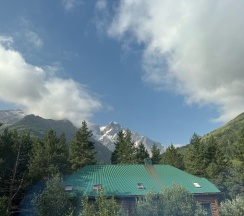 Хорошее местоположение - начало экотропы на долину Нарзанов, рядом поляна Чегет с кафе и магазинами