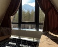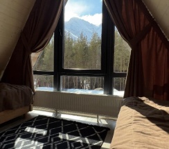Ездил на 3 дня. Очень уютный домик, две двуспальные кровати и еще есть диван. На улице есть мангальная зона. Красивый вид на горы.