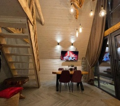 Отдыхали в этих домиках с друзьями на двое суток. Нас было две семьи с детьми. Нам очень понравилось . В домике есть все необходимое для проживания. В домиках очень уютно и чисто. Всё задумано до мелочей. Интерьер очень красивый. А так же хочу отметить есть беседка и монгальная зона. Как выходишь на улицу из домика кругом горы и красота.
