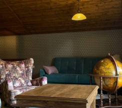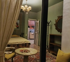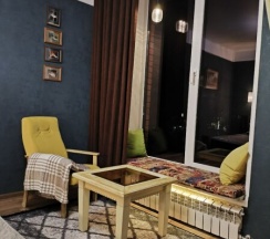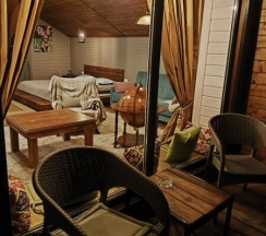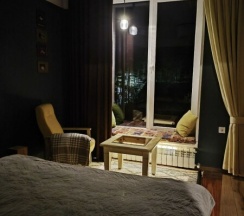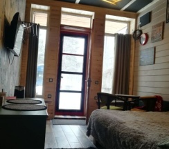 Кухня оснащена всем необходимым, газовая плита, посуда, чайник, холодильник, микроволновая печь. В номере свой санузел, Wi-Hi, телевизор. Номер комфортно размещает двух человек (двуспальная кровать King-size) плюс одно дополнительное место на раскладном диване (за отдельную плату). Этот номер не оставит вас равнодушным.