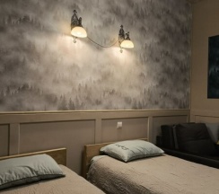 Номер "Комфорт" расположен на 1 этаже, 32м2. В номере свой с/у, ТВ, холодильник, чайник. Номер рассчитан на 2-3 человек (две односпальные кровати и ортопедическое кресло-кровать).