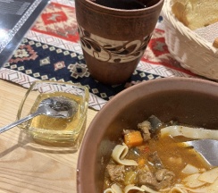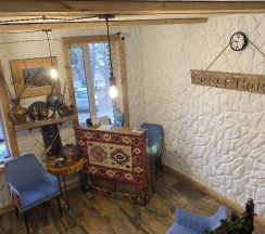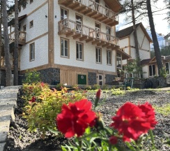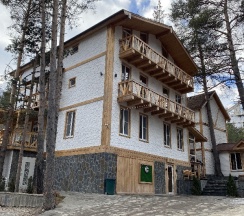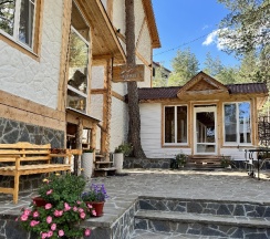 Были только в кафе, заехали пообедать после подъема на Эльбрус. Колоритно и уютно. Персонал доброжелательный. Посоветовали что заказать что будет быстрее приготовлено. Взяли лагман. Принесли действительно быстро. Очень вкусно. Мясо мягкое, порезано мелко. Хлеб бесплатно .Так же предложили нам глинтвейн на гранатовом соке со специями и принесли местный мёд. Так же очень вкусно. Сам гостевой дом с виду симпатичный и аккуратный. Есть места для отдыха и парковка. Красивые виды и лес вокруг.