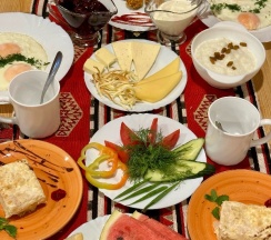 Очень вкусные завтраки, жили здесь шесть дней и поначалу были в восторге. Обслуживают быстро и готовят очень вкусно! Правда больше бы уже не выдержали, так как завтраки однообразные. Кофе натуральный в завтрак не входит, можно купить - чашка 200 руб. Также здесь можно поужинать - мастерицы-повара выше всяческих похвал!