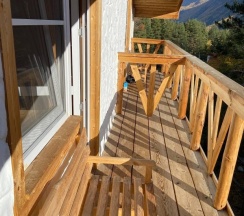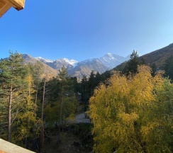 Шикарный вид с балкона, тёплый чистый уютный дом. Очень вкусные завтраки и вся еда в кафе. Хорошие и приятные сотрудники отеля. Пешая доступность до канатных дорог