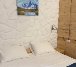 Место прекрасное! Отель новый, чистый, хорошие материалы использованы для постройки. Сухо и тепло внутри даже в дождь. Но номер настолько маленький, что негде было расстелить коврик для йоги. Большой балкон перед номером был залит водой, так как над ним нет крыши. Две лампочки в номере висели над проходом и свет был очень слабый - читать в номере вечером после интенсивных походов по горам было невозможно. Попросили дополнительную лампу, нам принесли настольную, которую пришлось поставить прямо на кровать, так как тумбочек прикроватных нет. Есть два узких шкафа - для хранения вещей достаточно удобно.