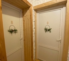 3) В номерах деревянный пол, он теплый :) Есть балконы и сосны под окнами.