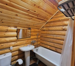 Жили в номере домика 2 из сруба, за окном шум реки успокаивает, но если закрыть окна, то тихо. Номер уютный, все необходимое (холодильник, телевизор и т.д.) есть. Чисто и пахнет деревом...