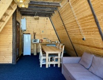 Жили в номере домика 2 из сруба, за окном шум реки успокаивает, но если закрыть окна, то тихо. Номер уютный, все необходимое (холодильник, телевизор и т.д.) есть. Чисто и пахнет деревом...