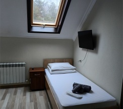 Уютные 3-местные номера с мансардными окнами и видом на живописные горные ландшафты. Санузел совмещенный с душевой кабиной, отделан кафельной плиткой. В ванной комнате все необходимые гигиенические принадлежности. В номере wi fi