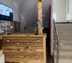 Очень приятный гостевой дом, с просторной общей кухней со всем необходимым, с общей зоной с удобными диванами и даже активностями в виде настольного хоккея. Хранилище для обуви и снаряжения большое и с сушилкой. Персонал очень доброжелательный, всё всегда подскажет. Расположение прекрасное, и дороги не слышно. У нас был номер стандарт. Единственный минус, что длина провода электрочайника не доходила до розетки у зоны стола, поэтому кипятили воду на тумбочках у кровати рядом с более близкими розетками) Матрас хорошей жесткости, как раз для моей спины, которой старше 35)