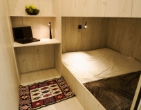 Сами капсулы хороши, места хватает, спать удобно, как своя мини комната. Но вот зона приема пищи, как будто находишься в аквариуме, все люди на улице идут мимо и смотрят как ты завтракаешь. Питьевой воды нет, вода из под крана пахнет хлоркой. И постоянно отлетающий вай-фай, тоже минус.