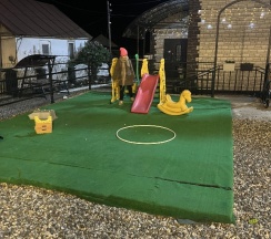Территория - комфорт как для детей (батут, бадминтон, мяч), так и для взрослых.