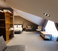 Предлагаем Вам для размещения прекрасный номер с видом на окрестные горы величественного Кавказа. Большой номер площадью 24 квадратных метров позволит с комфортом разместиться 4 гостям. К Вашим услугам двухспальная кровать и большой комфортный диван размером 2000x1400.