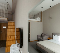 Предлагаем Вам для размещения прекрасный номер с видом на окрестные горы величественного Кавказа. Большой семейный номер площадью 26 квадратных метров позволит с комфортом разместиться 6 гостям. К Вашим услугам, две кровати,на втором ярусе матрас 1600x2000. На третьем ярусе большой матрас 1400x3300.