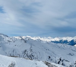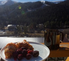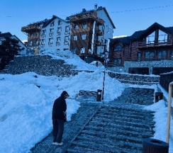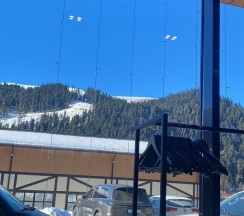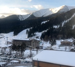 Шикарный отель скин ин ски аут - то есть находится прямо около горнолыжной трассы. И можно спускаться на лыжах прямо к отелю. Также здесь ресторан с шикарными панорамными видами на горы. Люблю здесь пить кофе и работать за ноутбуком днем, пока все на горе.
