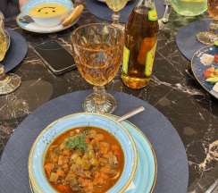 Ресторан при отеле заслуживает отдельного внимания. Завтраки каждый день разные, очень вкусные и сытные. Ужинали мы тоже чаще всего в отеле, т.к. тут очень атмосферное место прямо у горной реки. Меню разнообразное, порции большие и еда очень вкусная! Могу отметить насыщенную солянку, нежные шашлыки и самые вкусные хычины с сыром из всех, что я ел)