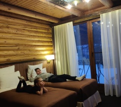 Потрясающий отель! Радушный и приветливый персонал! Кухня на высоте! Сауна с бассейном- то, что надо после спортивных нагрузок! Рядом магазины. Недалеко от подъемника. Живописный вид на горы и р. Аманауз. Стоянка для авто. Всем советую! Здесь есть все для потрясающего отдыха во все времена года!